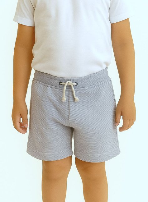 Bermuda infantil confeccionada em moletinho texturizado, com toque suave e excelente caimento. Possui cós com elástico e ilhós com cordão decorativo, uma peça que garante conforto e praticidade no vestir. O modelo apresenta acabamento clean e moderno, ideal para compor looks casuais com camisetas ou mais arrumados com polos e camisas.