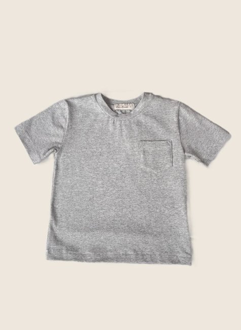 Camiseta infantil confeccionada em malha rajada com toque macio, ideal para proporcionar conforto durante todo o dia. Possui modelagem reta, gola careca, mangas curtas e um bolso na altura do peitoral, trazendo um charme extra à peça. Versátil e atemporal, é perfeita para compor looks casuais com praticidade e estilo.