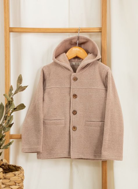 Este lindo casaco infantil une estilo e aconchego na medida certa. Com modelagem tipo jaqueta e capuz integrado, é confeccionado em tecido leve, macio e com felpa interna — ideal para os dias mais frios. Possui recorte no peitoral, bolso decorativo e charmosos botões de madeira que completam o visual com um toque sofisticado. Uma peça versátil e cheia de personalidade, perfeita para aquecer com muito conforto e elegância.