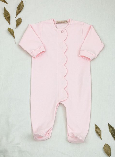 Macacão rosa bebê em malha suedine 100% algodão fio Egípcio, um tecido muito macio e confortável. Com gola careca, manga longa com punhoa, vista frontal em ondas com botões de pressão embutido e no entrepernas, perfeito para conforto e estilo do bebê. Macacão com pé.